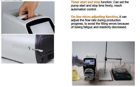 8. Fixed time and volumefunction: After turn on this function, the peristaltic pump will transfer preset volume within preset time. It is suitable for liquid dispensing in laboratory and industrial production.
